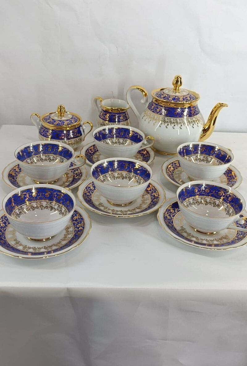 Elegante servizio da Tè vintage in porcellana, con un raffinato design blu e bianco.